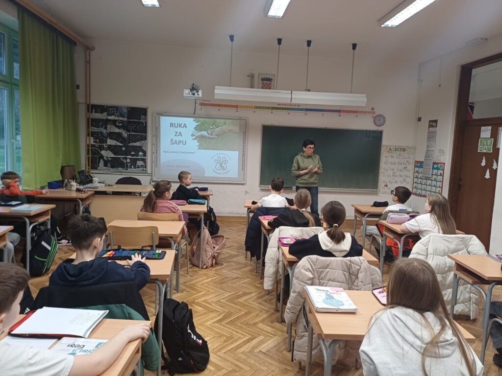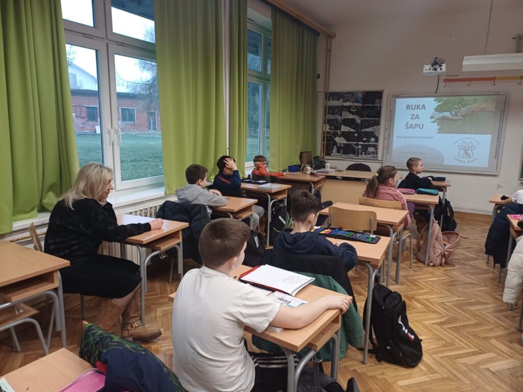Članica udruge „Zakon šape“ gospođa Lareta Žubrinić gostovala je u OŠ Eugena Kumičića, točnije u 4.c razredu učiteljice Vesne Košutić i tom priliko je učenicima predstavila rad udruge kao i aktivnosti u koje se mogu uključiti i djeca kako bi pomogla zbrinjavanju i skrbi napuštenih i zlostavljanih pasa i mačaka na području Grada Slatine.