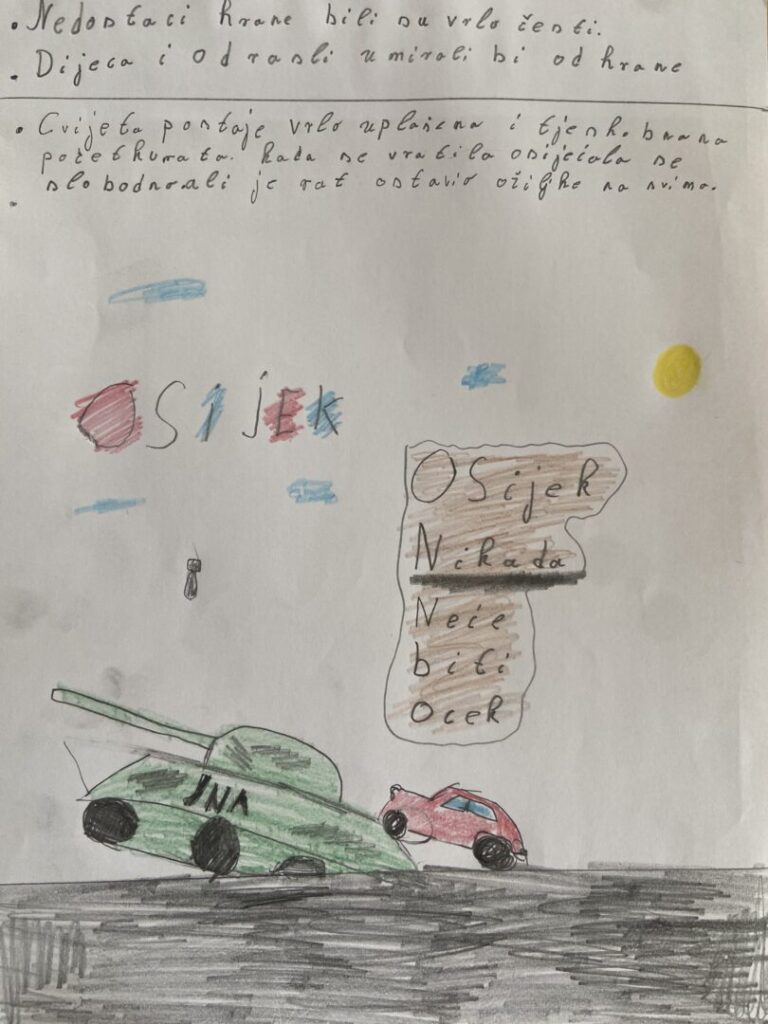 • Skupina A – Osijek u ratnom vihoru: predstavila je kako je rat promijenio svakodnevicu grada – od bombardiranja do života u skloništima.
