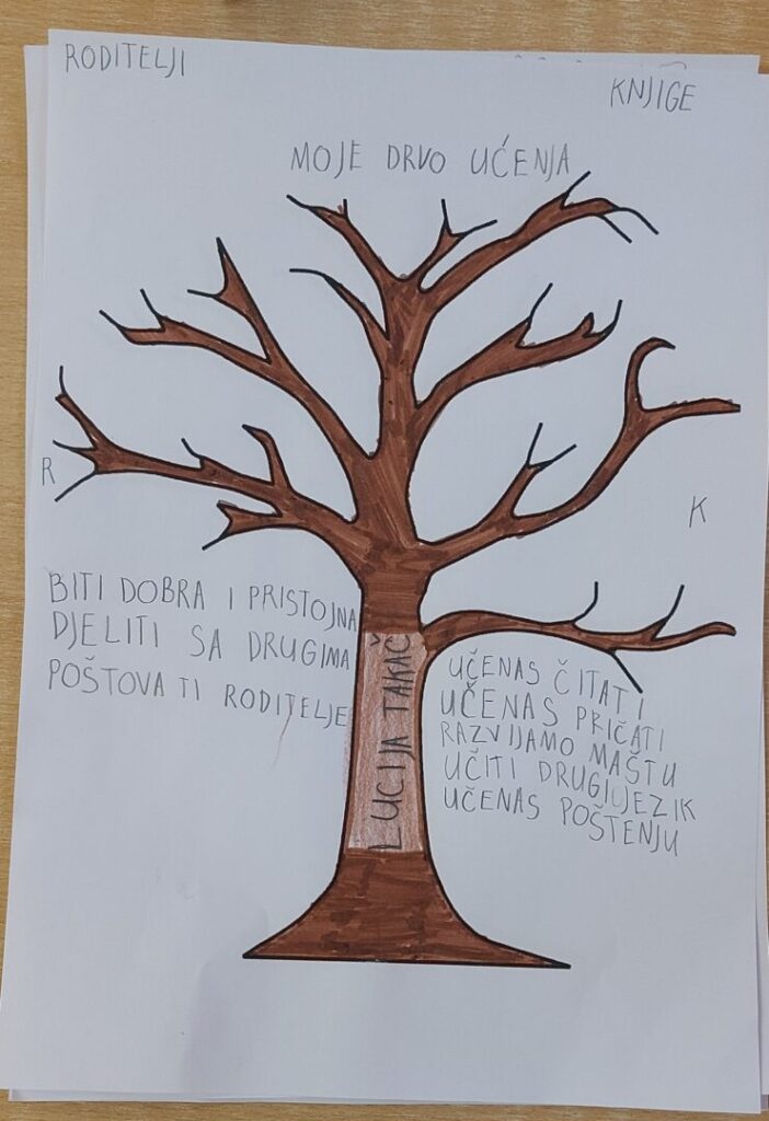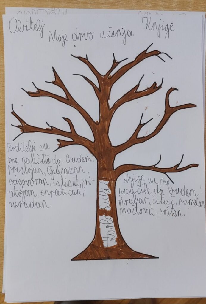 Tijekom radionice učenici su sudjelovali u različitim aktivnostima. U uvodnom razgovoru podijelili su koja im je najdraža knjiga ili priča te tko im najčešće čita priče kod kuće. U aktivnosti Moje drvo učenja“ učenici su crtali drvo čiji su korijeni predstavljali ono što su naučili od roditelja te ono što su naučili iz knjiga i priča. Kroz razgovor su istaknuli vrijednosti poput prijateljstva, pomaganja, poštenja, hrabrosti i dijeljenja s drugima.