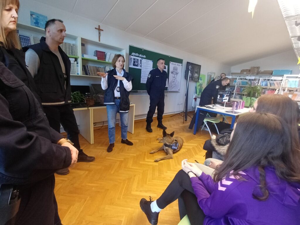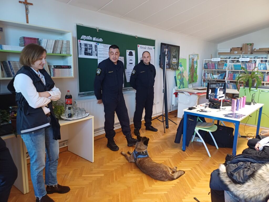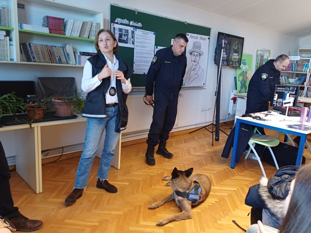Učenike osmih razreda jako je razveselila posebna gošća koja neumorno radi na potragama za drogama, a to je belgijska ovčarka Stela koja je potražni pas i pomaže policiji u pronalasku droga kako bi se uhitili počinitelji takvih djela.