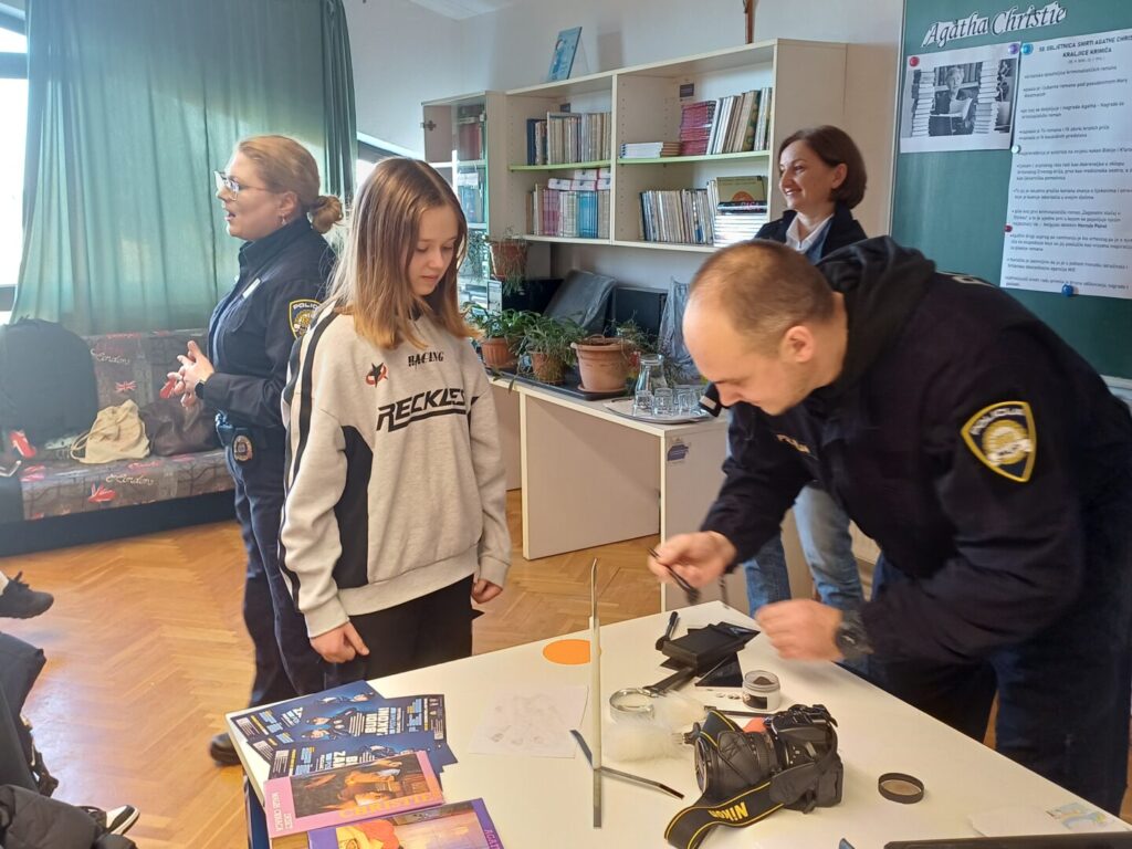 Učenici su imali prilike vidjeti kriminalističko-tehničkih sredstava i forenzičke alate koji se koristi u istragama, a i sami su sudjelovali u demonstraciji otkrivanja otisaka prstiju na papiru što ih je posebno razveselilo i ovaj susret učinilo zaista jedinstvenim iskustvom i događajem.
