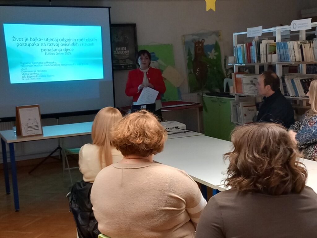U sklopu preventivnog  projekta „Život je bajka- utjecaj odgojnih postupaka roditelja na razvoj ovisničkih i rizičnih ponašanja djece“ održani su roditeljski sastanci u 3.c razreda (učiteljica Renata Grahovac), 3.b razreda (učiteljica Spomenka Bošnjak), 5.a razreda (nastavnica Ivana Strupar), 7.b razreda (nastavnica Iva Vilček) i 5.b razreda (nastavnica Rajka Avirović Gaća)  na kojima je knjižničarka i voditeljica projekta Melita Schmitz predstavila nacionalne rezultate međunarodnog istraživanja EU Kids Online 2025.
