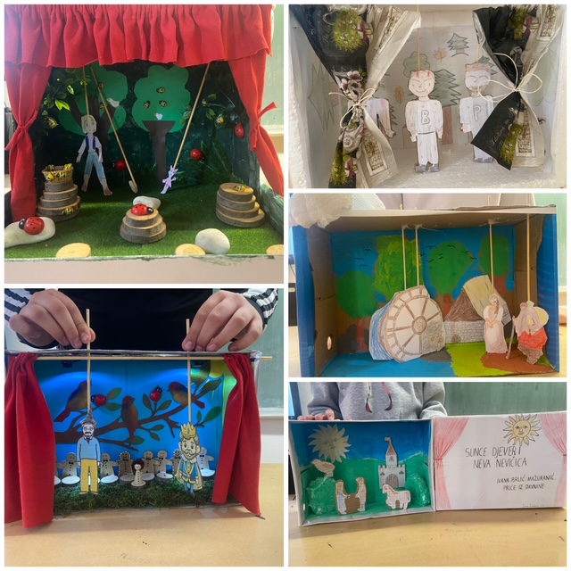 Učenici 6. d razrednog odjela pokazali su svoju kreativnost, maštovitost i razumijevanje književnih djela realizirajući zanimljiv projekt pod nazivom „Kazalište u kutiji“. Ovaj zadatak bio je još jedno kreativno rješenje za analizu djela za cjelovito čitanje koje su učenici odradili u sklopu eTwinning projekta Lektira bez papira 5.