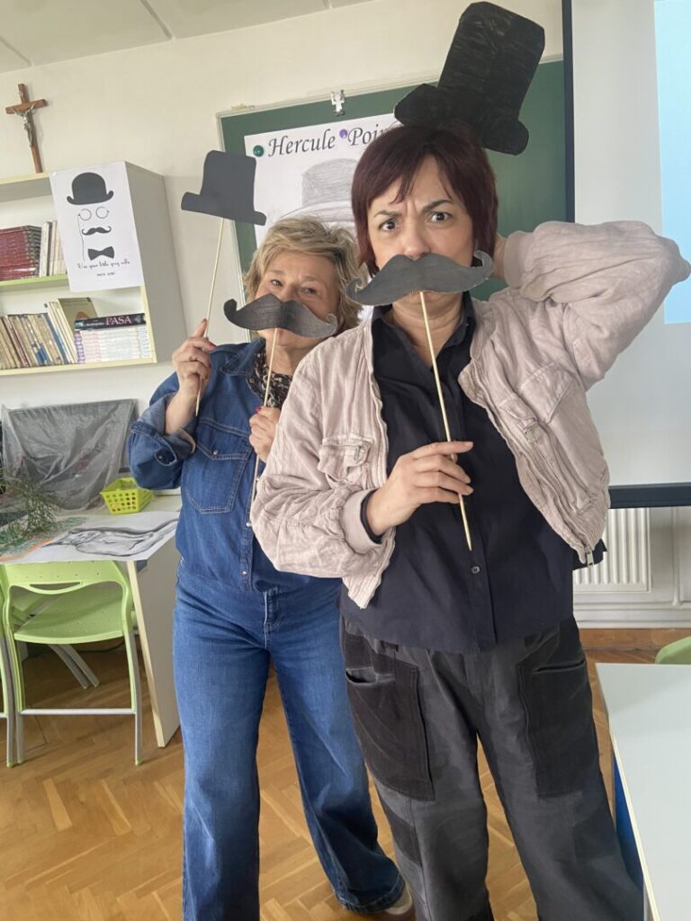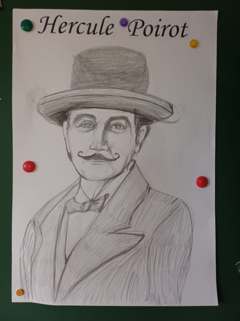 Nastavnik likovne kulture Josip Jelenčić je s učenicima izradio rekvizite, tj prepoznatljive brkove detektiva Poaroa i šešir kojega je uvijek nosio . Nastavnik Josip nacrtao je i Herculov portret.