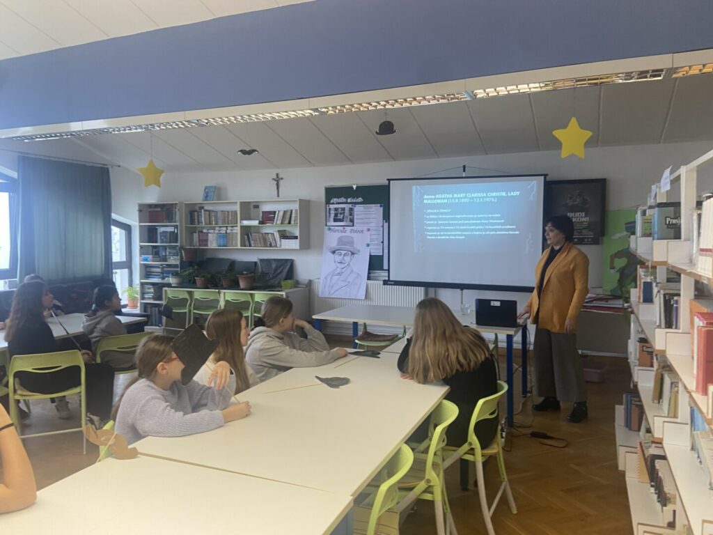 Povodom obilježavanja 50. obljetnice smrti ove slavne autorice organizirali smo školski projekt za učenike od 5. do 8. razreda, a cilj ovoga projekta je bio upoznati učenika s karakteristikama kriminalističkog romana, upoznati Agathu kao osobu te uvidjeti kako je njen osobni život utjecao na pisanje njenih djela i, naravno, upoznati se s najpoznatijim likom detektiva iz njenih romana, a to je Hercule Poirot.