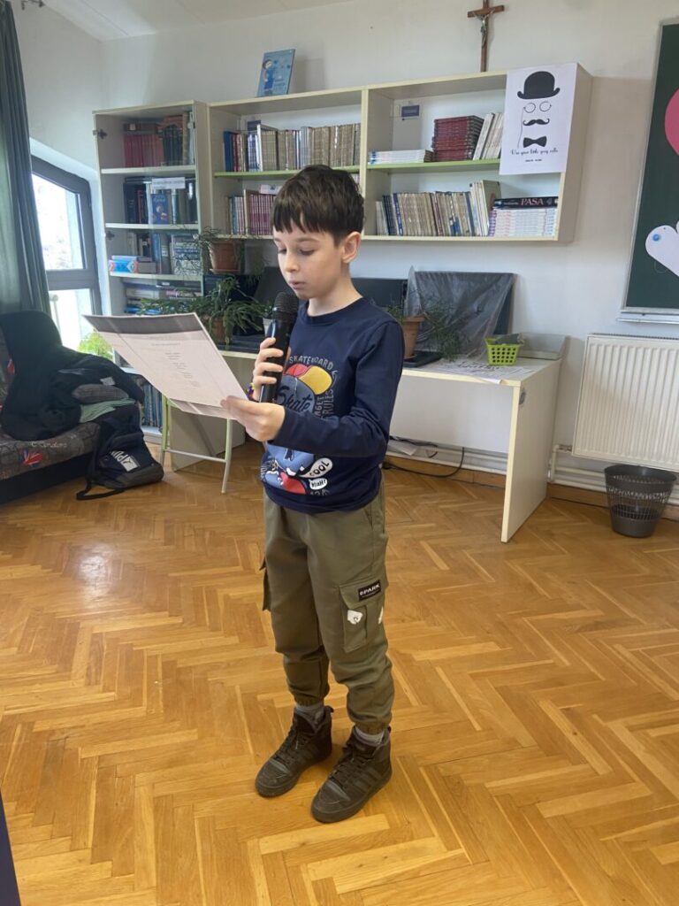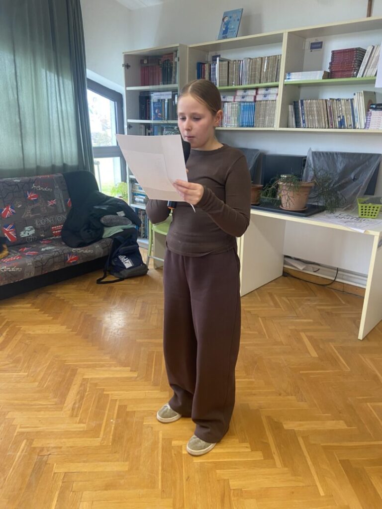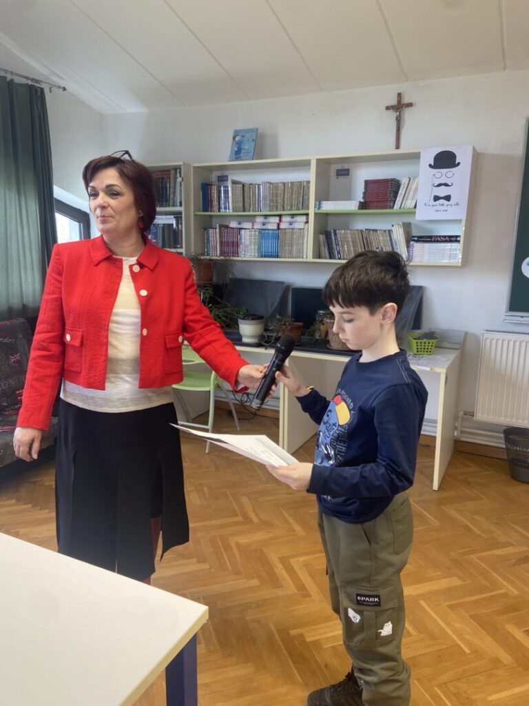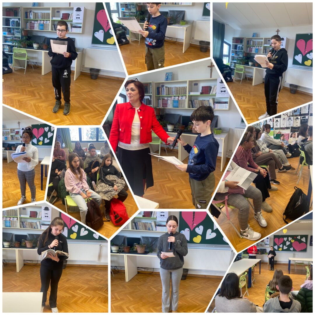 Učenici su čitali i svoje autorske pjesme koje su napisali na satu hrvatskoga jezika kao i  pjesme poznatih hrvatskih autora,  a knjižničarka je priredila pjesme slatinske pjesnikinje Tanje Trudnikov iz zbirke „Poljupci od čokolade“