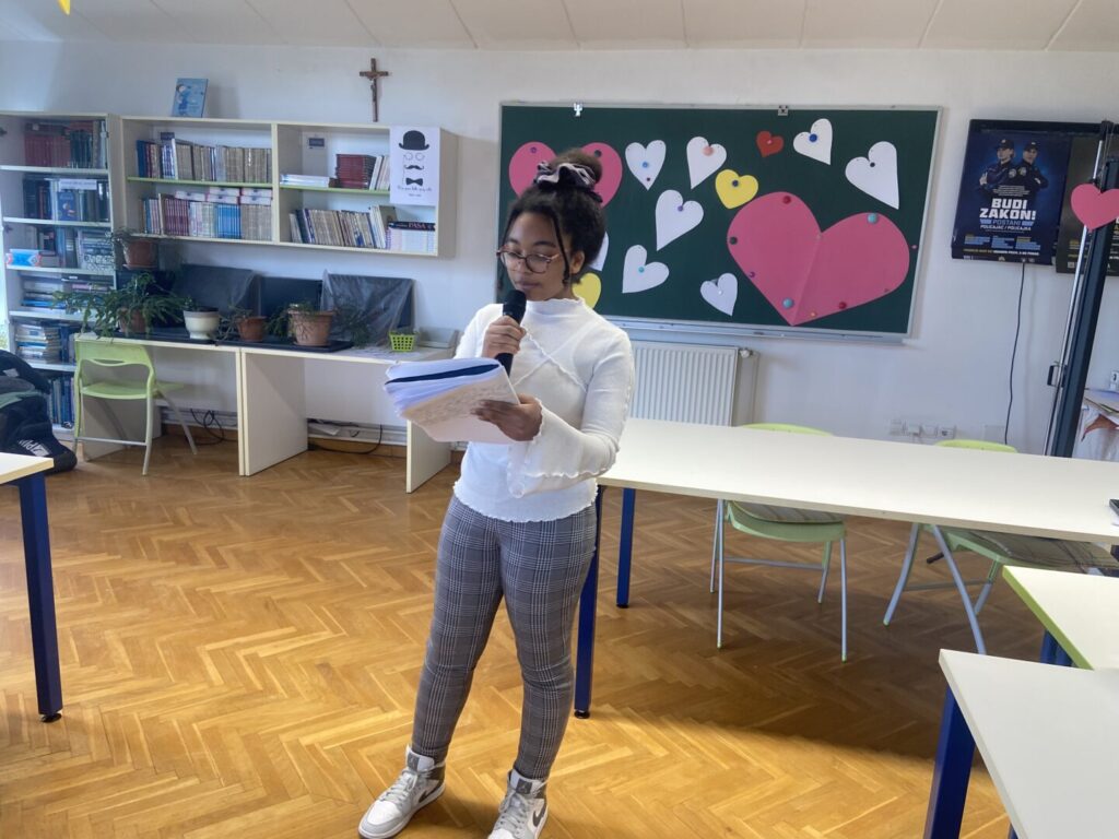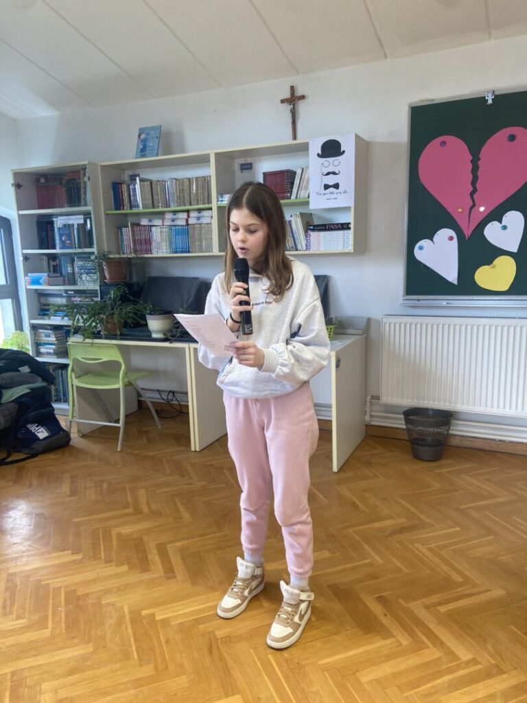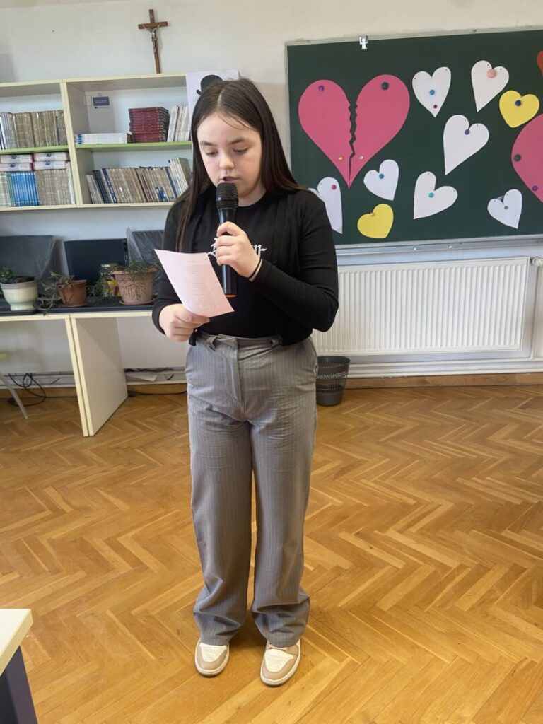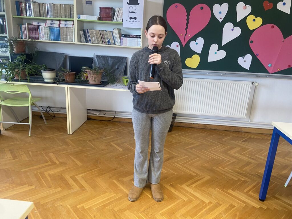 Kazivanje poezije bilo je zaista svečano, zanosno i osjećajno, baš onako kako ljubavnu poeziju i treba kazivati stoga se zahvaljujem svim učenicima na sudjelovanju i od srca (punog ljubavi) im želimo sretno Valentinovo!